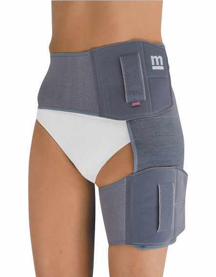 Применение компрессионного бандажа назначают в раннем постоперационном периоде и при травмах (для разгрузки тазобедренного сустава и устранения болевых ощущений)