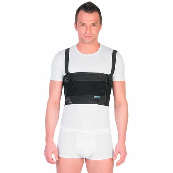 - имеет нерастяжимую переднюю панель для надежной фиксации переднебоковых частей грудной клетки и эластичную заднюю часть для сохранения мышечного тонуса